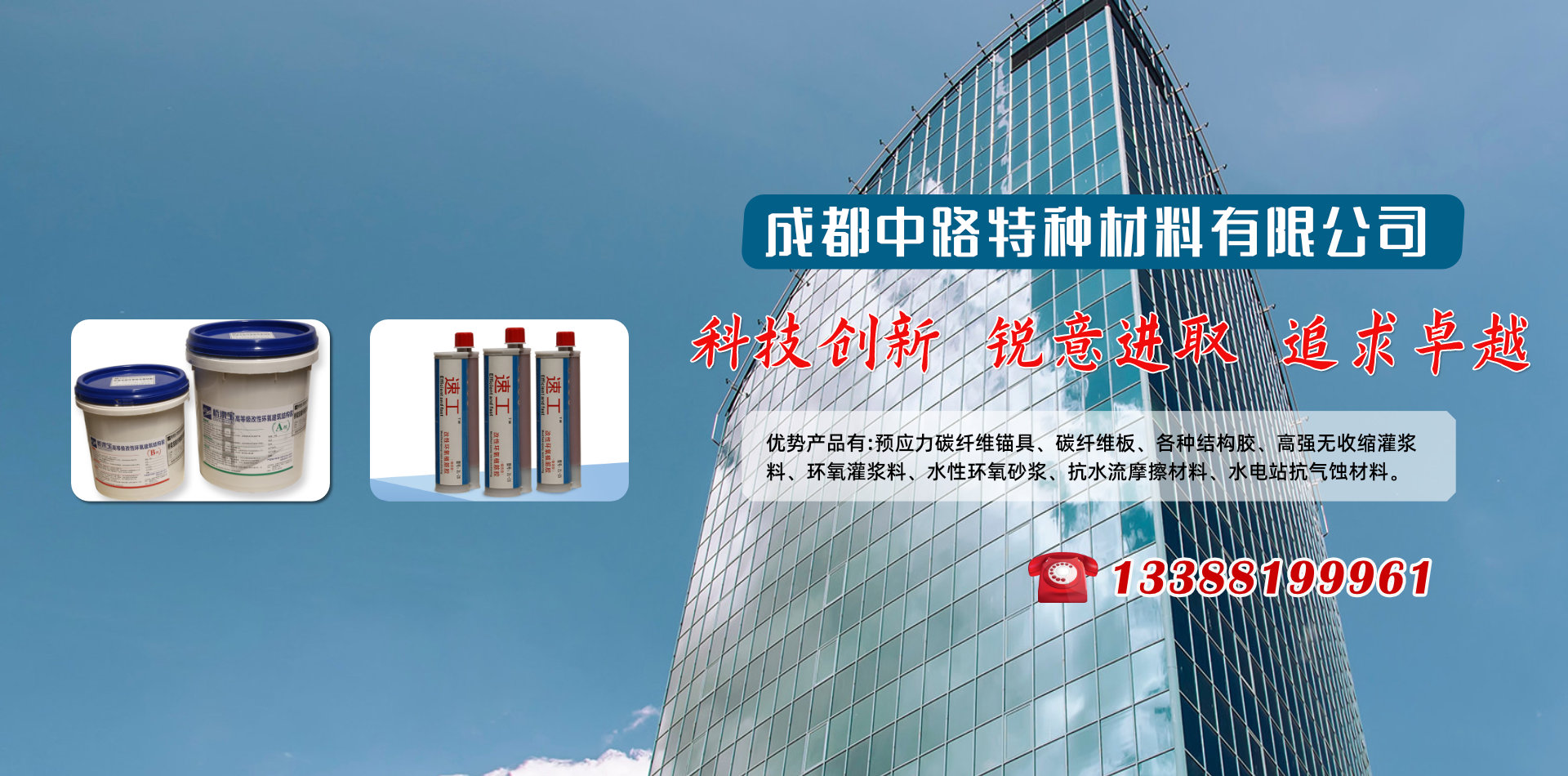 成都中路特種材料有限公司借助清華大學(xué)高分子材料學(xué)科、晨光化工研究院、西南交通大學(xué)、四川交通職業(yè)技術(shù)學(xué)院科研技術(shù)平臺(tái)成為一家集新材料研發(fā)、銷(xiāo)售、技術(shù)服務(wù)和施工于一體的專(zhuān)業(yè)服務(wù)公司,優(yōu)勢(shì)產(chǎn)品有:預(yù)應(yīng)力碳纖維錨具、碳纖維板、各種結(jié)構(gòu)膠、高強(qiáng)無(wú)收縮灌漿料、環(huán)氧灌漿料、水性環(huán)氧砂漿、抗水流摩擦材料、水電站抗氣蝕材料和研發(fā)各種特殊用途膠黏劑產(chǎn)品地處西南腹地成都,業(yè)務(wù)覆蓋四川各大中小城市、重慶、云南、昆明、新疆、西藏等區(qū)域。產(chǎn)品涵蓋各種加固施工材料、施工設(shè)備及施工配件,品牌有威士邦等aa進(jìn)口品牌,同時(shí)批發(fā)銷(xiāo)售國(guó)產(chǎn)高、中、低端品牌,為客戶提供全面參考。